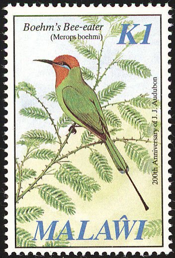 Visibility: public Image owner: none postage 8/1/1985 1k multi issue=200th Anniversary of the Birth of John J. Audubon dt=birds (1985 Malawi) d=Merops boehmi (1985) unwmk Crops No visible images cropped from this one. Measurements Resolution is unknown. Source Source name: Colnect File URL: http://i.colnect.net/b/864/279/Böhm-s-Bee-eater-Merops-boehmi.jpg Uploaded August 31, 2014, 6:03 pm by Stan Shebs |