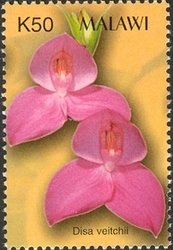 Visibility: public Image owner: none postage 11/10/2003 50k multi issue=misc nature 50k d=Disa veitchii unwmk Crops No visible images cropped from this one. Measurements Resolution is unknown. Source Source name: Colnect File URL: http://i.colnect.net/b/1458/459/Orchids---Disa-veitchii.jpg Uploaded August 31, 2014, 6:04 pm by Stan Shebs |