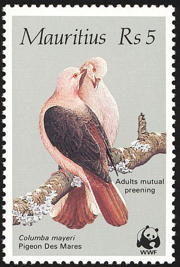 Visibility: public Image owner: none postage 9/2/1985 5r multi dt=Pink Pigeon d=Columba mayeri wmk=mult crown & script CA Crops No visible images cropped from this one. Measurements Resolution is unknown. Source Source name: Colnect File URL: http://i.colnect.net/b/760/730/Pink-Pigeon-Nesoenas-mayeri.jpg Uploaded August 31, 2014, 6:40 pm by Stan Shebs |