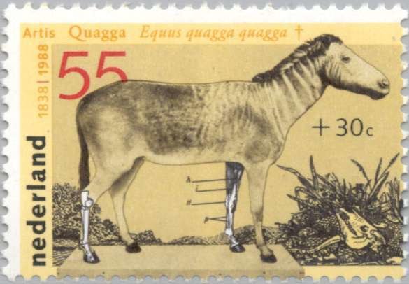 Visibility: public Image owner: none semipostal 3/22/1988 55+30c multi issue=charity 1988 dt=animals (1988 Netherlands) d=Equus quagga extinct type of zebra unwmk perf=14x12.75 Crops No visible images cropped from this one. Measurements Resolution is unknown. Source Source name: Colnect File URL: http://i.colnect.net/b/176/991/Quagga-Equus-quagga-quagga---extinct-Species.jpg Uploaded September 1, 2014, 1:51 pm by Stan Shebs |