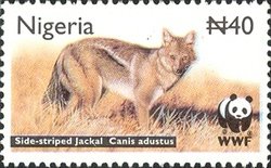 Visibility: public Image owner: none postage 12/12/2003 40.00n multi issue=WWF 2003 dt=striped jackals unwmk Crops No visible images cropped from this one. Measurements Resolution is unknown. Source Source name: Colnect File URL: http://i.colnect.net/b/905/915/Side-striped-Jackal-Canis-adustus.jpg Uploaded September 1, 2014, 3:57 pm by Stan Shebs |