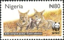 Visibility: public Image owner: none postage 12/12/2003 80.00n multi issue=WWF 2003 dt=striped jackals unwmk Crops No visible images cropped from this one. Measurements Resolution is unknown. Source Source name: Colnect File URL: http://i.colnect.net/b/905/916/Side-striped-Jackal-Canis-adustus.jpg Uploaded September 1, 2014, 3:57 pm by Stan Shebs |