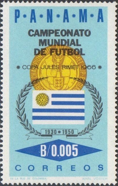 Visibility: public Image owner: none postage 7/11/1966 0.005b multi issue=World Cup 1966 unwmk Crops No visible images cropped from this one. Measurements Resolution is unknown. Source Source name: Colnect File URL: http://i.colnect.net/b/1565/038/Flag-of-Uruguay.jpg Uploaded September 1, 2014, 4:36 pm by Stan Shebs |