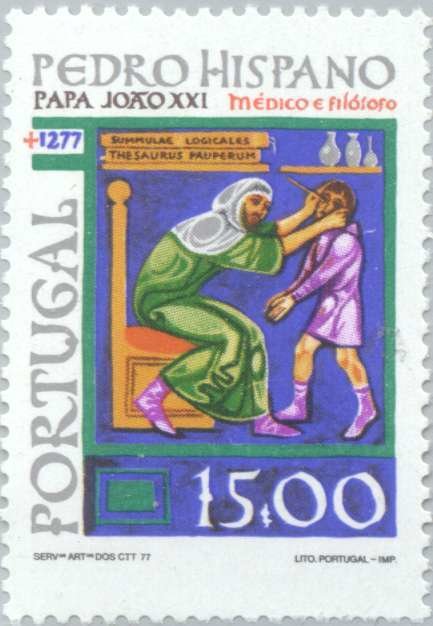Visibility: public Image owner: none postage 5/20/1977 15.00e multi issue=7th Centenary of the Death of Pope John XXI unwmk Crops No visible images cropped from this one. Measurements Resolution is unknown. Source Source name: Colnect File URL: http://i.colnect.net/b/173/893/Petrus-Hispanus-the-Physician.jpg Uploaded September 1, 2014, 5:09 pm by Stan Shebs |