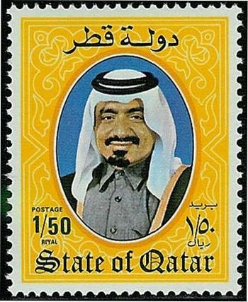 Visibility: public Image owner: none postage 3/1/1984 1.50r multi issue=1984 unwmk Crops No visible images cropped from this one. Measurements Resolution is unknown. Source Source name: Colnect File URL: http://i.colnect.net/images/b/1041/334/Sheikh-Khalifa-bin-Hamed-Al-Thani.jpg Uploaded May 20, 2013, 7:16 pm by Stan Shebs |