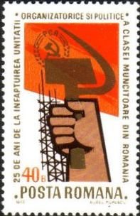 Visibility: public Image owner: none postage 5/28/1973 40b multi issue=Romanian Labor Party 25th d=fist with hammer sickle red flag unwmk perf=13.5 Crops No visible images cropped from this one. Measurements Resolution is unknown. Source Source name: Colnect File URL: http://i.colnect.net/b/609/498/Fist-with-hammer-and-sickle-red-flag.jpg Uploaded September 1, 2014, 5:52 pm by Stan Shebs |