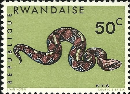 Visibility: public Image owner: none postage 1/30/1967 50c dkyelgrn&multi dt=snakes (1967) d=gaboon viper (1967) unwmk Crops No visible images cropped from this one. Measurements Resolution is unknown. Source Source name: Colnect File URL: http://i.colnect.net/images/b/1541/663/Gaboon-Viper-Bitis-gabonica.jpg Uploaded September 1, 2014, 6:10 pm by Stan Shebs |