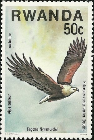 Visibility: public Image owner: none postage 9/12/1977 50c multi dt=Birds of Prey (1977) d=Haliaeetus vocifer (1977 Rwanda) unwmk Crops No visible images cropped from this one. Measurements Resolution is unknown. Source Source name: Colnect File URL: http://i.colnect.net/b/1543/314/African-Fish-Eagle-Haliaeetus-vocifer.jpg Uploaded September 1, 2014, 6:24 pm by Stan Shebs |