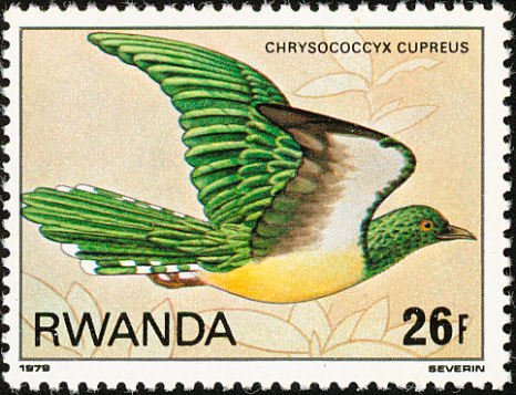 Visibility: public Image owner: none postage 1/7/1980 26fr multi dt=Nyunwe Forest birds d=Chrysococcyx cupreus (1980) unwmk Crops No visible images cropped from this one. Measurements Resolution is unknown. Source Source name: Colnect File URL: http://i.colnect.net/b/1542/694/African-Emerald-Cuckoo Chrysococcyx-cupreus.jpg Uploaded September 1, 2014, 6:25 pm by Stan Shebs |