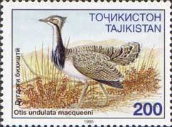 Visibility: public Image owner: none postage 2/1/1996 200tr multi issue=Endangered Bird Species in Tajikistan d=Chlamydotis undulata macqueenii unwmk Crops No visible images cropped from this one. Measurements Resolution is unknown. Source Source name: Colnect File URL: http://i.colnect.net/b/1098/641/Houbara-Bustard-Chlamydotis-undulata.jpg Uploaded September 1, 2014, 6:30 pm by Stan Shebs |