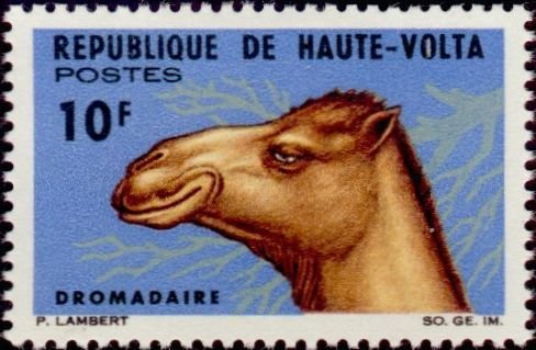 Visibility: public Image owner: none postage 1/15/1966 10fr multi issue=1966 dt=animals (1966 Upper Volta) d=Camelus dromedarius (1966) unwmk Crops No visible images cropped from this one. Measurements Resolution is unknown. Source Source name: Colnect File URL: http://i.colnect.net/b/508/197/Dromedary-Camelus-dromedarius.jpg Uploaded September 1, 2014, 6:42 pm by Stan Shebs |