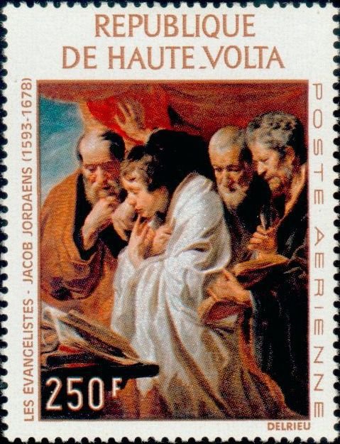 Visibility: public Image owner: none airmail 7/1/1967 250fr multi issue=Paintings 1968 dt=paintings (1968 Upper Volta) d=The four Evangelists - Jacob Jordaens unwmk Crops No visible images cropped from this one. Measurements Resolution is unknown. Source Source name: Colnect File URL: http://i.colnect.net/b/509/924/The-four-Evangelists-Jacob-Jordaens.jpg Uploaded September 1, 2014, 6:42 pm by Stan Shebs |