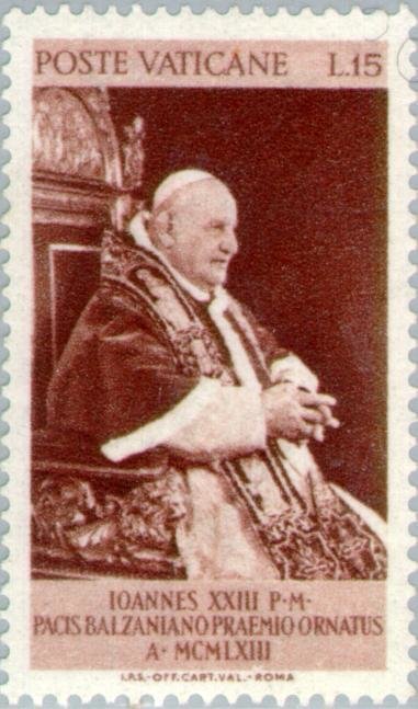 Visibility: public Image owner: none postage 5/8/1963 15l brn issue=Presentation of the Balzan Price of Peace to Pope John XXIII wmk=crossed keys perf=14 Crops No visible images cropped from this one. Measurements Resolution is unknown. Source Source name: Colnect File URL: http://i.colnect.net/b/150/803/Pope-Johannes-XXIII--Prize.jpg Uploaded September 1, 2014, 7:52 pm by Stan Shebs |
