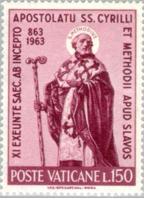 Visibility: public Image owner: none postage 11/22/1963 150l issue=Sct. Cyril and Sct. Methodius wmk=crossed keys perf=14 Crops No visible images cropped from this one. Measurements Resolution is unknown. Source Source name: Colnect File URL: http://i.colnect.net/b/150/817/St-Methodios.jpg Uploaded May 22, 2013, 5:31 pm by Stan Shebs |