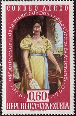 Visibility: public Image owner: none airmail 10/21/1960 0.60b carrose&multi issue=Luisa Caceres death 94th d=Doña Luisa Cáceres de Arismendi unwmk perf=14 Crops No visible images cropped from this one. Measurements Resolution is unknown. Source Source name: Colnect File URL: http://i.colnect.net/b/1558/439/Doña-Luisa-Cáceres-de-Arismendi.jpg Uploaded September 1, 2014, 7:54 pm by Stan Shebs |