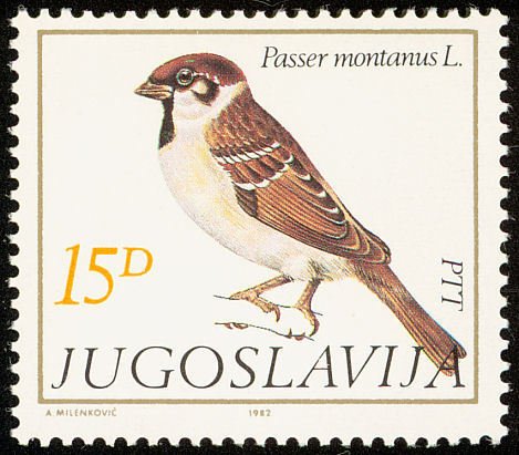 Visibility: public Image owner: none postage 5/24/1982 15din multi dt=sparrows d=Passer montanus (1982) unwmk perf=13.5x13.25 Crops No visible images cropped from this one. Measurements Resolution is unknown. Source Source name: Colnect File URL: http://i.colnect.net/b/763/597/Eurasian-Tree-Sparrow-Passer-montanus.jpg Uploaded September 1, 2014, 9:24 pm by Stan Shebs |