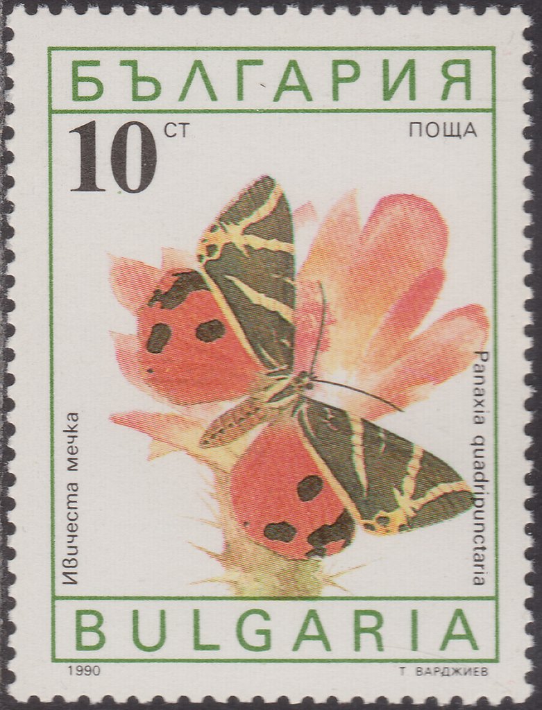 Visibility: public Image owner: none postage 8/8/1990 10s multi dt=butterflies (1990 Bulgaria) d=Panaxia quadripunctaria (1990) unwmk perf=12.75 Crops No visible images cropped from this one. Measurements Resolution is unknown. Source Source name: Colnect File URL: http://i.colnect.net/images/b/1453/819/Jersey-Tiger-Panaxia-quadripunctaria.jpg Uploaded May 27, 2013, 10:14 pm by Stan Shebs |