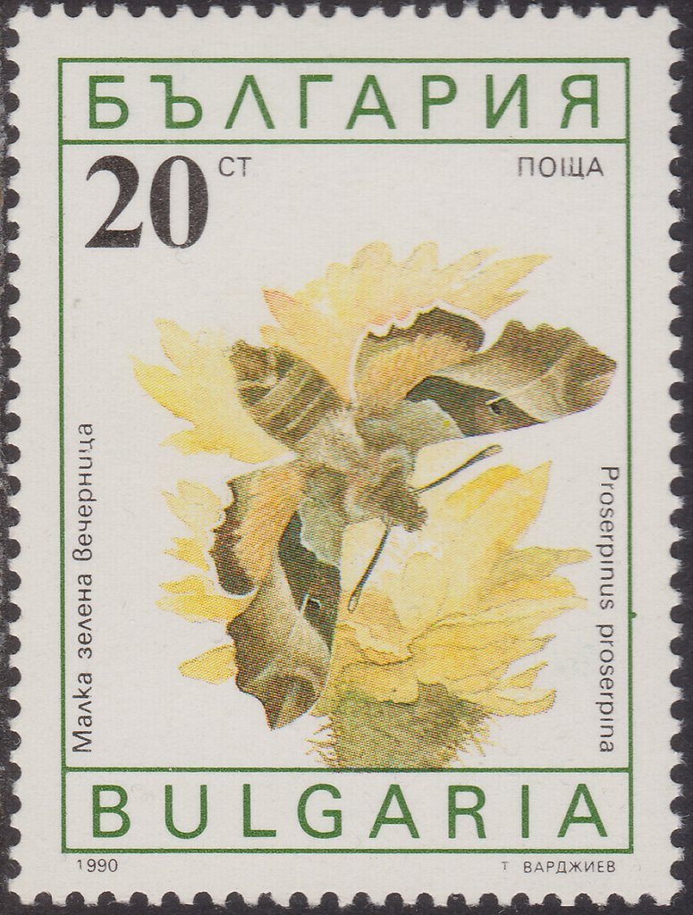 Visibility: public Image owner: none postage 8/8/1990 20s multi dt=butterflies (1990 Bulgaria) d=Willowherb hawkmoth unwmk perf=12.75 Crops No visible images cropped from this one. Measurements Resolution is unknown. Source Source name: Colnect File URL: http://i.colnect.net/images/b/1453/820/Willowherb-Hawkmoth-Proserpinus-proserpina.jpg Uploaded September 2, 2014, 3:55 pm by Stan Shebs |