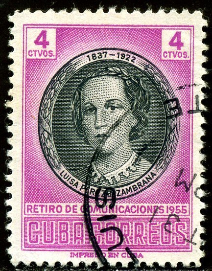 Visibility: public Image owner: none postage 5/2/1956 4c roselil issue=Retirement Fund 1956 d=Zambrana unwmk perf=12.5 Crops No visible images cropped from this one. Measurements Resolution is unknown. Source Source name: Colnect File URL: http://i.colnect.net/images/b/1442/443/Luisa-Perez-de-Zambrana.jpg Uploaded September 2, 2014, 4:01 pm by Stan Shebs |