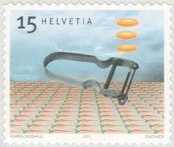 Visibility: public Image owner: none postage 12/30/2003 15(c) multi issue=Swiss Design Classics dt=Swiss design classics d=Vegetable peeler unwmk Crops No visible images cropped from this one. Measurements Resolution is unknown. Source Source name: Colnect File URL: http://i.colnect.net/b/528/253/Potato-peeler--Rex--1947-invention-of-Alfred-Neweczera-18.jpg Uploaded September 2, 2014, 4:01 pm by Stan Shebs |