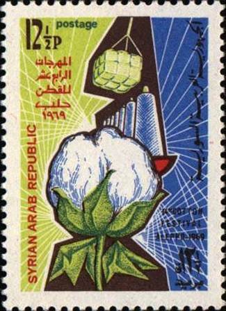 Visibility: public Image owner: none postage 10/10/1969 12 1/2p multi issue=Cotton Festival in Aleppo 1969 unwmk Crops No visible images cropped from this one. Measurements Resolution is unknown. Source Source name: Colnect File URL: http://i.colnect.net/images/b/1506/155/Cotton.jpg Uploaded September 2, 2014, 4:21 pm by Stan Shebs |
