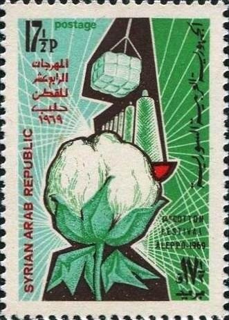 Visibility: public Image owner: none postage 10/10/1969 17 1/2p multi issue=Cotton Festival in Aleppo 1969 unwmk Crops No visible images cropped from this one. Measurements Resolution is unknown. Source Source name: Colnect File URL: http://i.colnect.net/images/b/1506/156/Cotton.jpg Uploaded September 2, 2014, 4:21 pm by Stan Shebs |