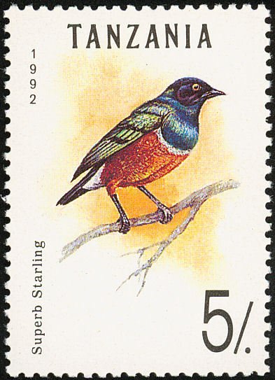 Visibility: public Image owner: none postage 10/15/1992 5sh multi issue=Birds 1992 dt=birds (1992 Tanzania) d=Spreo superbus (1992) unwmk perf=12x12.5 Crops No visible images cropped from this one. Measurements Resolution is unknown. Source Source name: Colnect File URL: http://i.colnect.net/b/821/858/Superb-Starling-Lamprotornis-superbus.jpg Uploaded September 2, 2014, 4:23 pm by Stan Shebs |