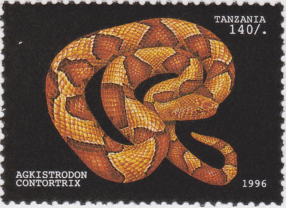 Visibility: public Image owner: none postage 3/29/1996 140sh multi issue=Snakes 1996 dt=snakes (1996) d=Agkistrodon contortrix (1996) unwmk perf=12.25x12 Crops No visible images cropped from this one. Measurements Resolution is unknown. Source Source name: Colnect File URL: http://i.colnect.net/b/1433/489/Southern-Copperhead-Agkistrodon-contortrix.jpg Uploaded September 2, 2014, 4:35 pm by Stan Shebs |