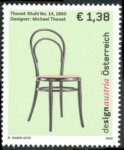Visibility: public Image owner: none postage 6/21/2002 1.38€ multi dt=design Austria d=Thonet Stuhl No. 14 unwmk Crops No visible images cropped from this one. Measurements Resolution is unknown. Source Source name: Colnect File URL: http://i.colnect.net/b/703/025/Design-Austria.jpg Uploaded September 2, 2014, 4:48 pm by Stan Shebs |