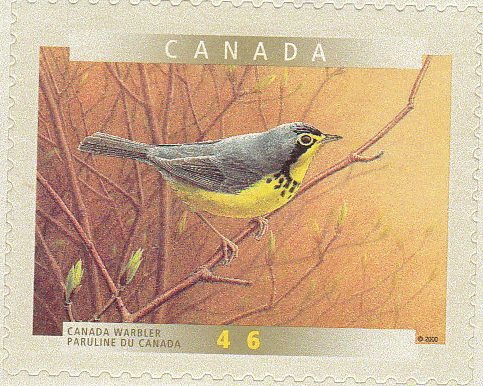 Visibility: public Image owner: none postage 3/1/2000 46(c) multi dt=birds of Canada (1999) d=Canada Warbler unwmk perf=Die Cut 11.5 Crops No visible images cropped from this one. Measurements Resolution is unknown. Source Source name: Colnect File URL: http://i.colnect.net/b/777/983/Canada-Warbler-Wilsonia-canadensis.jpg Uploaded September 2, 2014, 5:28 pm by Stan Shebs |