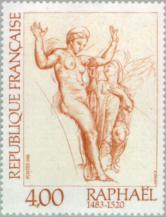Visibility: public Image owner: none postage 4/9/1983 4.00fr multi issue=500th Anniversary of the Birth of Raphaël d=Raphael 1483-1520 Venus & Psyche - study unwmk Crops No visible images cropped from this one. Measurements Resolution is unknown. Source Source name: Colnect File URL: http://i.colnect.net/b/145/500/Raphael-1483-1520--Venus-and-Psyche----study.jpg Uploaded September 2, 2014, 6:41 pm by Stan Shebs |