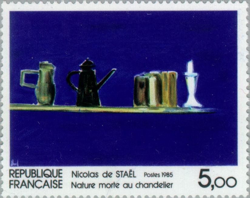 Visibility: public Image owner: none postage 6/1/1985 5.00fr multi d=Still Life with Candlestick - Nicolas de Stael unwmk perf=13x12.25 Crops No visible images cropped from this one. Measurements Resolution is unknown. Source Source name: Colnect File URL: http://i.colnect.net/b/145/622/Nicolas-de-Stael--Still-Life-with-Candlestick-.jpg Uploaded September 2, 2014, 6:53 pm by Stan Shebs |