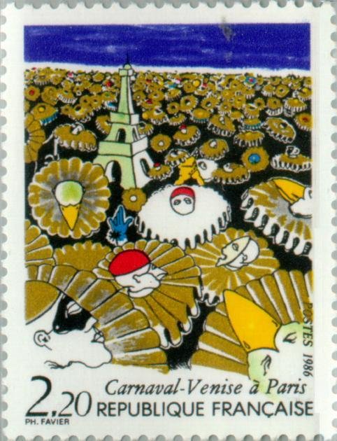 Visibility: public Image owner: none postage 2/11/1986 2.20fr multi issue=Venetian Carnival in Paris unwmk Crops No visible images cropped from this one. Measurements Resolution is unknown. Source Source name: Colnect File URL: http://i.colnect.net/images/b/145/662/Carnival---Venice-to-Paris.jpg Uploaded September 2, 2014, 6:54 pm by Stan Shebs |
