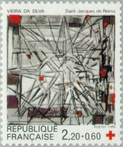 Visibility: public Image owner: none semipostal 11/22/1986 2.20+0.60fr multi issue=Red Cross 1986 d=Window of Vieira da Silva - Church of St Jacques de Reims unwmk Crops No visible images cropped from this one. Measurements Resolution is unknown. Source Source name: Colnect File URL: http://i.colnect.net/images/b/145/724/Window-of-Vieira-da-Silva---Church-of-St-Jacques-de-Reims.jpg Uploaded September 2, 2014, 6:54 pm by Stan Shebs |