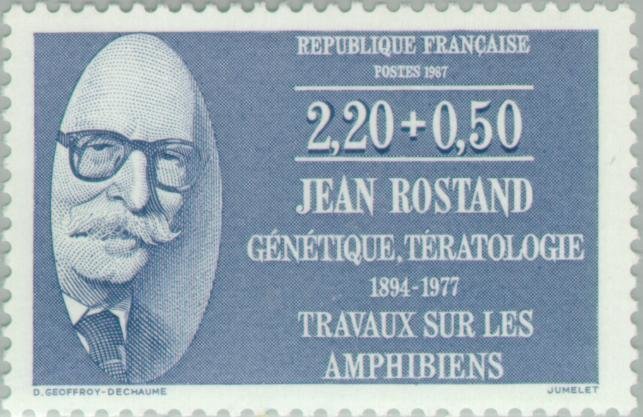 Visibility: public Image owner: none semipostal 2/21/1987 2.20fr+0.50c bl dt=famous persons (1987) unwmk perf=13 Crops No visible images cropped from this one. Measurements Resolution is unknown. Source Source name: Colnect File URL: http://i.colnect.net/b/145/738/Jean-Rostand-1894-1977-Genetics-Teratology---work-on-amph.jpg Uploaded September 2, 2014, 6:55 pm by Stan Shebs |