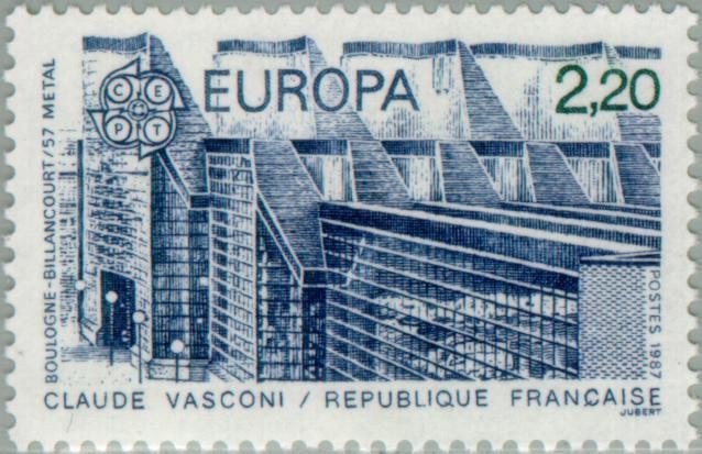 Visibility: public Image owner: none postage 4/25/1987 2.20fr bl issue=Europa 1987 d=Architecture Claude Vasconi - Boulogne-Billancourt57 metal unwmk Crops No visible images cropped from this one. Measurements Resolution is unknown. Source Source name: Colnect File URL: http://i.colnect.net/b/145/753/CEPT---Architecture-Claude-Vasconi---Boulogne-Billancour.jpg Uploaded September 2, 2014, 6:55 pm by Stan Shebs |