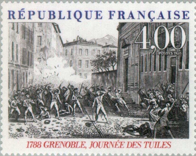 Visibility: public Image owner: none postage 6/18/1988 4fr multi issue=200th Anniversary of the French Revolution (in 1988) d=Grenoble 1788 - Day of the tiles unwmk perf=13x12.25 Crops No visible images cropped from this one. Measurements Resolution is unknown. Source Source name: Colnect File URL: http://i.colnect.net/b/145/832/Grenoble-1788---Day-of-the-tiles.jpg Uploaded September 2, 2014, 6:56 pm by Stan Shebs |