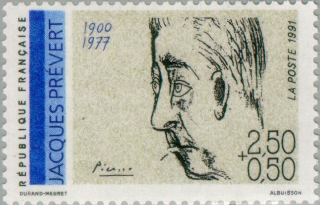 Visibility: public Image owner: none semipostal 2/23/1991 2.50fr+0.50c multi dt=French Poets unwmk Crops No visible images cropped from this one. Measurements Resolution is unknown. Source Source name: Colnect File URL: http://i.colnect.net/b/146/012/Jacques-Prévert-1900-1977.jpg Uploaded September 2, 2014, 6:58 pm by Stan Shebs |