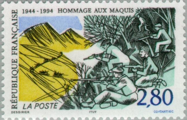Visibility: public Image owner: none postage 4/9/1994 2.80fr multi issue=50th Anniversary of the Maquis Resistance unwmk perf=13 Crops No visible images cropped from this one. Measurements Resolution is unknown. Source Source name: Colnect File URL: http://i.colnect.net/b/146/252/Tribute-to-the-Maquis.jpg Uploaded September 2, 2014, 7:00 pm by Stan Shebs |
