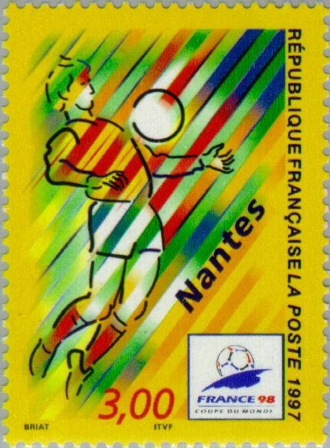 Visibility: public Image owner: none postage 5/31/1997 3fr multi issue=World Cup 1998 in 1997 unwmk Crops No visible images cropped from this one. Measurements Resolution is unknown. Source Source name: Colnect File URL: http://i.colnect.net/images/b/146/482/World-Cup-Football---FRANCE-98-Nantes.jpg Uploaded September 2, 2014, 7:08 pm by Stan Shebs |