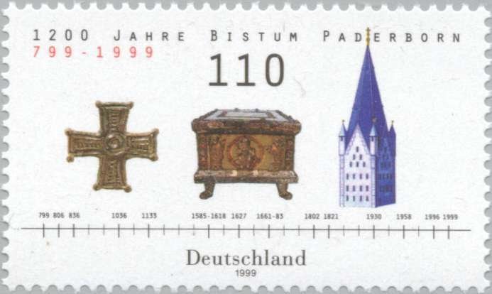 Visibility: public Image owner: none postage 6/10/1999 110(pf) multi issue=Diocese Paderborn 1200th unwmk Crops No visible images cropped from this one. Measurements Resolution is unknown. Source Source name: Colnect File URL: http://i.colnect.net/b/154/397/Diocese-Paderborn.jpg Uploaded September 2, 2014, 7:54 pm by Stan Shebs |