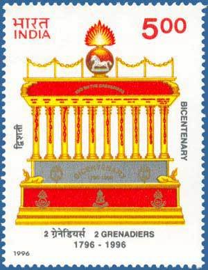Visibility: public Image owner: none postage 12/4/1996 5r multi issue=200th Anniversary of the Second Battalion, Grenadiers wmk=Asokan capital Crops No visible images cropped from this one. Measurements Resolution is unknown. Source Source name: Colnect File URL: http://i.colnect.net/b/554/206/2nd-Grenadiers.jpg Uploaded September 3, 2014, 4:18 pm by Stan Shebs |