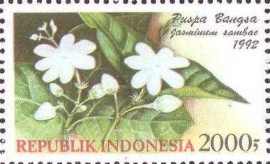 Visibility: public Image owner: none postage 1/20/1992 2000r multi issue=Flora 92 National Horticultural Exhibition unwmk perf=13.25x12.5 Crops No visible images cropped from this one. Measurements Resolution is unknown. Source Source name: Colnect File URL: http://i.colnect.net/b/1141/237/Arabian-jasmine-Jasminum-sambac.jpg Uploaded September 3, 2014, 4:41 pm by Stan Shebs |