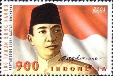 Visibility: public Image owner: none postage 6/6/2001 900r multi issue=100th Anniversary of the Birth of Dr. Ahmed Sukarno unwmk perf=12.5 Crops No visible images cropped from this one. Measurements Resolution is unknown. Source Source name: Colnect File URL: http://i.colnect.net/b/1143/462/100-Tahun-Bung-Karno.jpg Uploaded September 3, 2014, 5:32 pm by Stan Shebs |