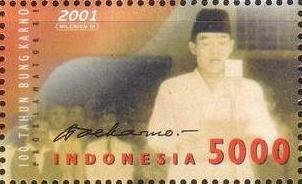 Visibility: public Image owner: none postage 6/6/2001 5000r multi issue=100th Anniversary of the Birth of Dr. Ahmed Sukarno unwmk perf=13.5x12.75 Crops No visible images cropped from this one. Measurements Resolution is unknown. Source Source name: Colnect File URL: http://i.colnect.net/b/1143/703/Bung-Karno.jpg Uploaded September 3, 2014, 5:32 pm by Stan Shebs |
