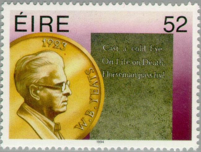 Visibility: public Image owner: none postage 10/18/1994 52p multi dt=Irish Nobel Prize Winners d=William Butler Yeats & poem unwmk perf=15x14 Crops No visible images cropped from this one. Measurements Resolution is unknown. Source Source name: Colnect File URL: http://i.colnect.net/b/129/223/William-Butler-Yeats-and-poem.jpg Uploaded September 3, 2014, 5:47 pm by Stan Shebs |