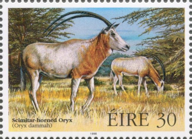 Visibility: public Image owner: none postage 10/8/1998 30p multi dt=Endangered Animals (1998) d=Oryx dammah unwmk Crops No visible images cropped from this one. Measurements Resolution is unknown. Source Source name: Colnect File URL: http://i.colnect.net/b/129/541/Scimitar-Oryx-Oryx-dammah.jpg Uploaded September 3, 2014, 5:53 pm by Stan Shebs |