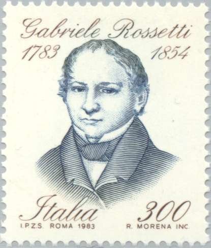Visibility: public Image owner: none postage 2/28/1983 300l multi issue=Gabriele Rossetti 200th d=Gabriele Rossetti wmk=stars perf=14.25x13.25 Crops No visible images cropped from this one. Measurements Resolution is unknown. Source Source name: Colnect File URL: http://i.colnect.net/b/175/631/Gabriele-Rossetti.jpg Uploaded September 3, 2014, 6:16 pm by Stan Shebs |