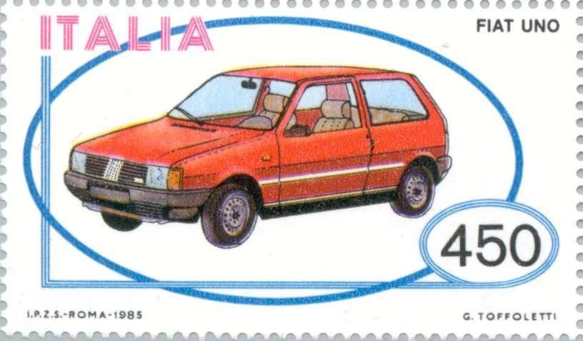Visibility: public Image owner: none postage 3/21/1985 450(l) multi dt=Italian Vehicles d=Fiat Uno wmk=stars Crops No visible images cropped from this one. Measurements Resolution is unknown. Source Source name: Colnect File URL: http://i.colnect.net/images/b/176/208/Italian-Motor-Industry--Fiat.jpg Uploaded September 3, 2014, 6:18 pm by Stan Shebs |