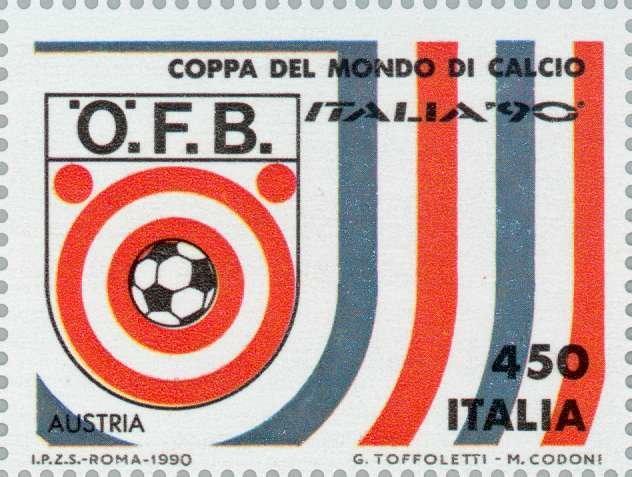 Visibility: public Image owner: none postage 3/24/1990 450(l) multi issue=World Cup 1990 d=Austria soccer emblem perf=14x13.25 Crops No visible images cropped from this one. Measurements Resolution is unknown. Source Source name: Colnect File URL: http://i.colnect.net/b/177/719/World-Cup-Football-Championship--Austria.jpg Uploaded September 3, 2014, 6:24 pm by Stan Shebs |
